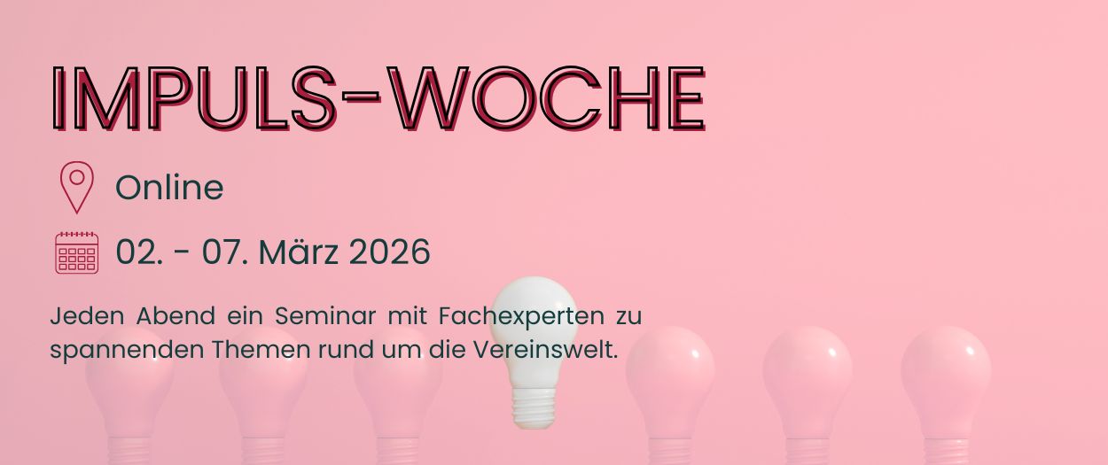 Vom 02.-07. März findet eine Impuls-Woche statt: Jeden Abend, online, spannende Themen wie Finanzierung und Social Media.